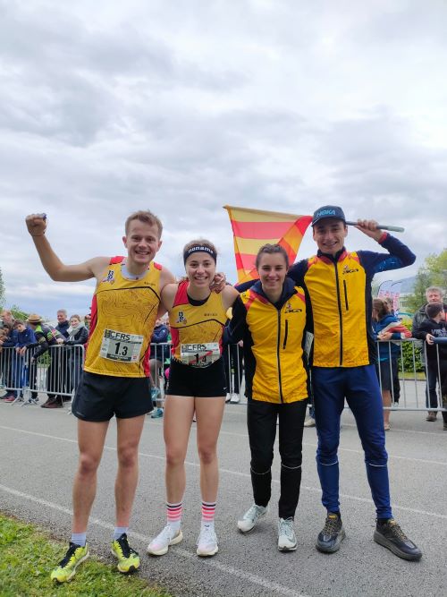 Le championnat de France de relais sprint se tenait jeudi après-midi à Oyonnax. Sans surprise, c'est la très solide équipe de l'ACA Aix-en-Provence, composée de Hélène Champigny, Mathias Barros-Vallet, Adrien Delenne et Annabelle Delenne qui l'a emporté avec trois minutes d'avance sur Orientation Team Besançon (Rahela Brunner, Jérôme Bouchan, Vincent Coupat, Cécile Foltzer), deuxième. La dernière place sur le podium a fait l'objet d'une belle bataille dans le couloir d'arrivée entre le Tous Azimuts Douai (Mélanie D'Harreville, Louis Haltz, Thomas Radondy, Roxane Florent) et Balise 25 (Capucine Vercellotti, Lucas Verjux, Kylian Wymer, Alyssia Wymer). Le club nordiste arrache finalement la médaille de bronze. Après cette course palpitante diffusée en live sur YouTube par les organisateurs, une course open était proposée aux autres orienteurs venus dès le jeudi encourager les équipes de leur club.