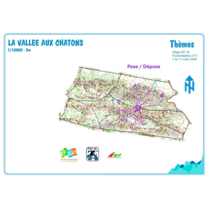 - Pose/dépose : 7 petits circuits , à effectuer en binôme, avec 1 poste à poser, puis un à déposer. L’objectif n’est pas de recartographier la zone, mais de poser efficacement un poste, en ayant une bonne image mentale de la zone, en ayant lu sa définition et en prenant en compte l’environnement du poste. Puis aller vérifier l’emplacement du poste du binôme. Si le poste vous semblebien posé, le retirer et rentrer au départ. S’il y a un souci, revenir au départ puis repartir avec son binôme et éventuellement un coach pour discuter de l’emplacement