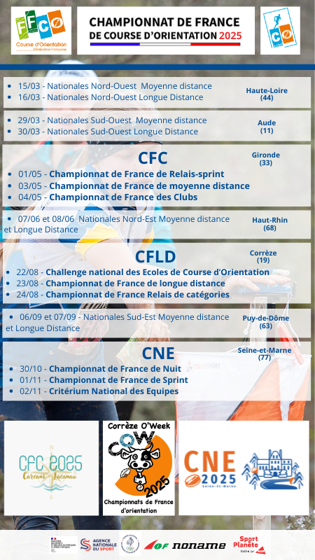 Trois week-ends se distinguent particulièrement dans cette programmation avec l'organisation des Championnats de France qui rassembleront des milliers d'orienteurs :