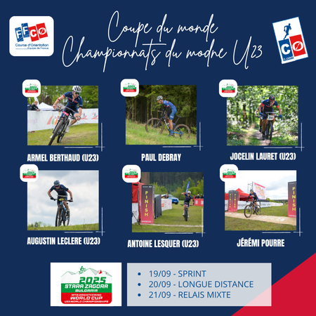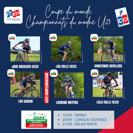 La liste des sportifs sélectionnés en équipe de France de CO à VTT pour la Coupe du monde / Championnats du monde U23 est en ligne sur le site fédéral : cliquez ici