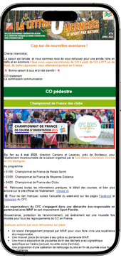 Dans cette newsletter, retrouvez toutes les informations sur les événements nationaux et internationaux de course d'orientation, les nouveautés de la saison : cliquez ici